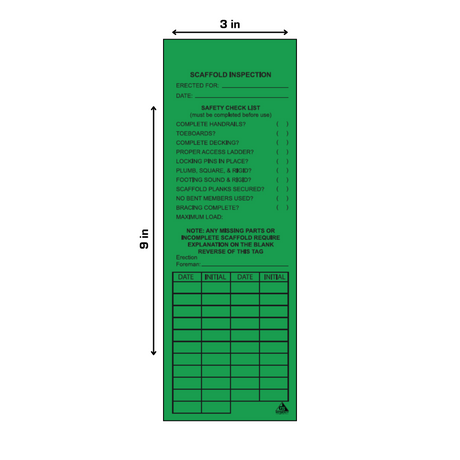Tear-Proof Scaffold Inspection Tags, [Pack of 25] 3 x 9 inch Performance Never Tear