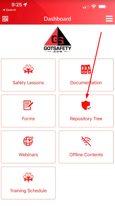 - From the app “Dashboard”, click on “Repository”.