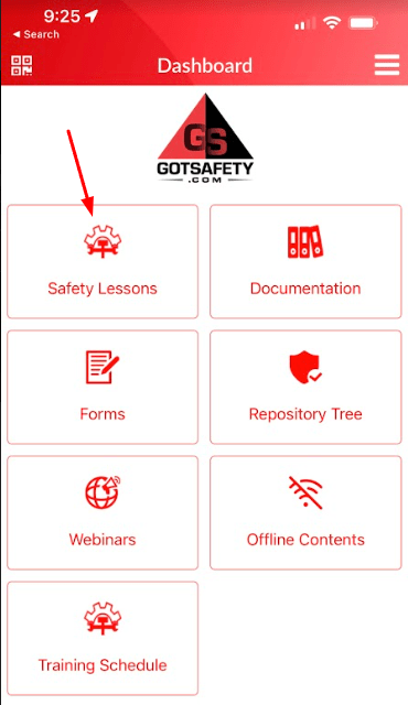 - From the app “Dashboard”, click on “Safety Lessons”.