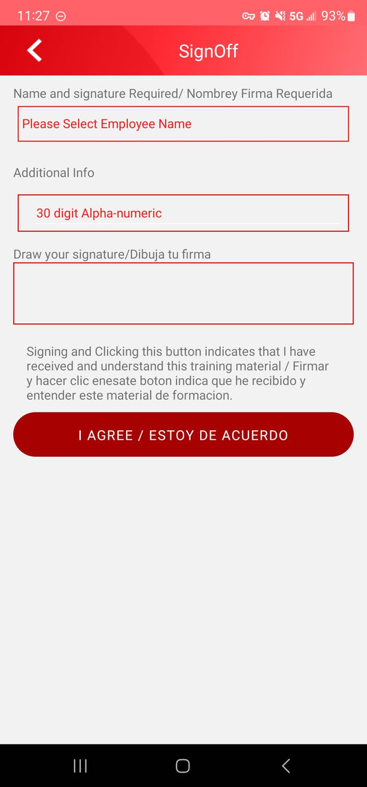 - Now you will need to click into the “Draw Your Signature” field. You can draw your signature with your finger. Once you have signed, click either the “Done” or “Save” button. Then click “I Agree” to submit the training record to the company’s admin portal.