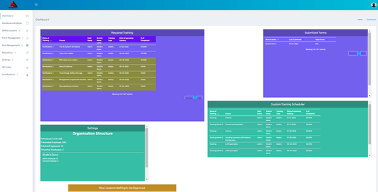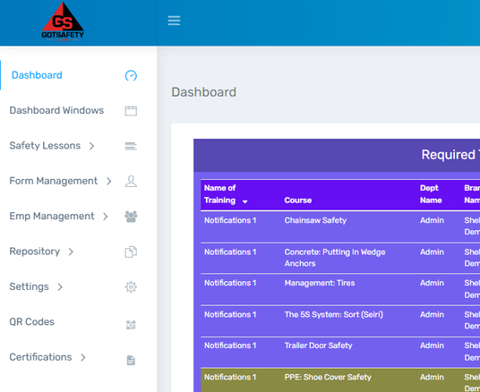 The “Dashboard” will give you account data and statistics about your GotSafety system. This area won’t have information displayed at first and will start to accumulate information as you complete trainings and use the system. “At-A-Glance” data includes: