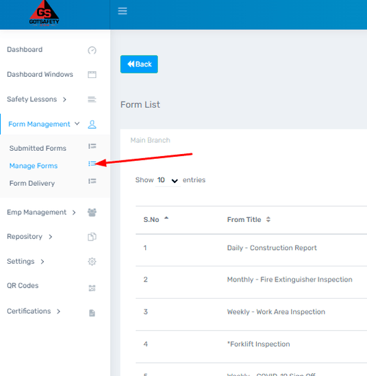 - If you wish to have a custom form created, please contact GotSafety client support.