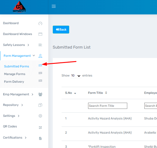- This page will show you the forms that your employees have submitted.