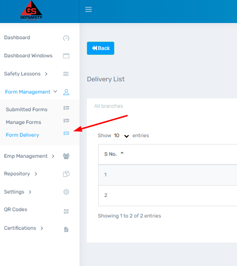- To add a new contact for delivery, select “Form Management” and then click on “Form Delivery” from the drop-down menu.